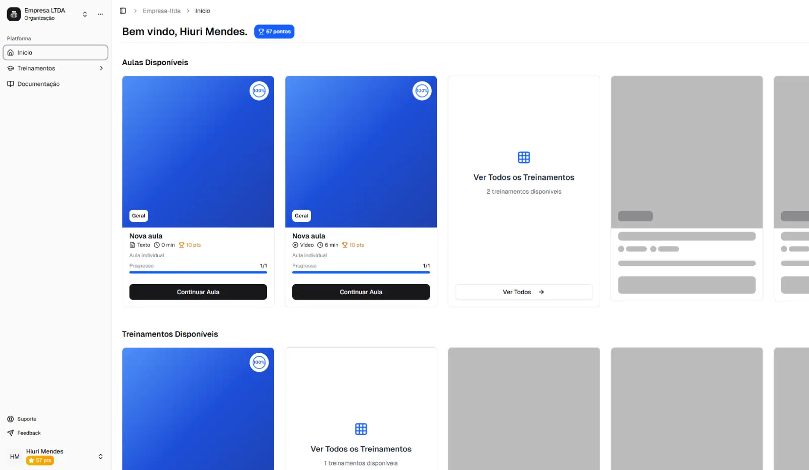 Plataforma web de treinamentos corporativos com foco em acessibilidade e usabilidade, desenvolvida para capacitar equipes de empresas