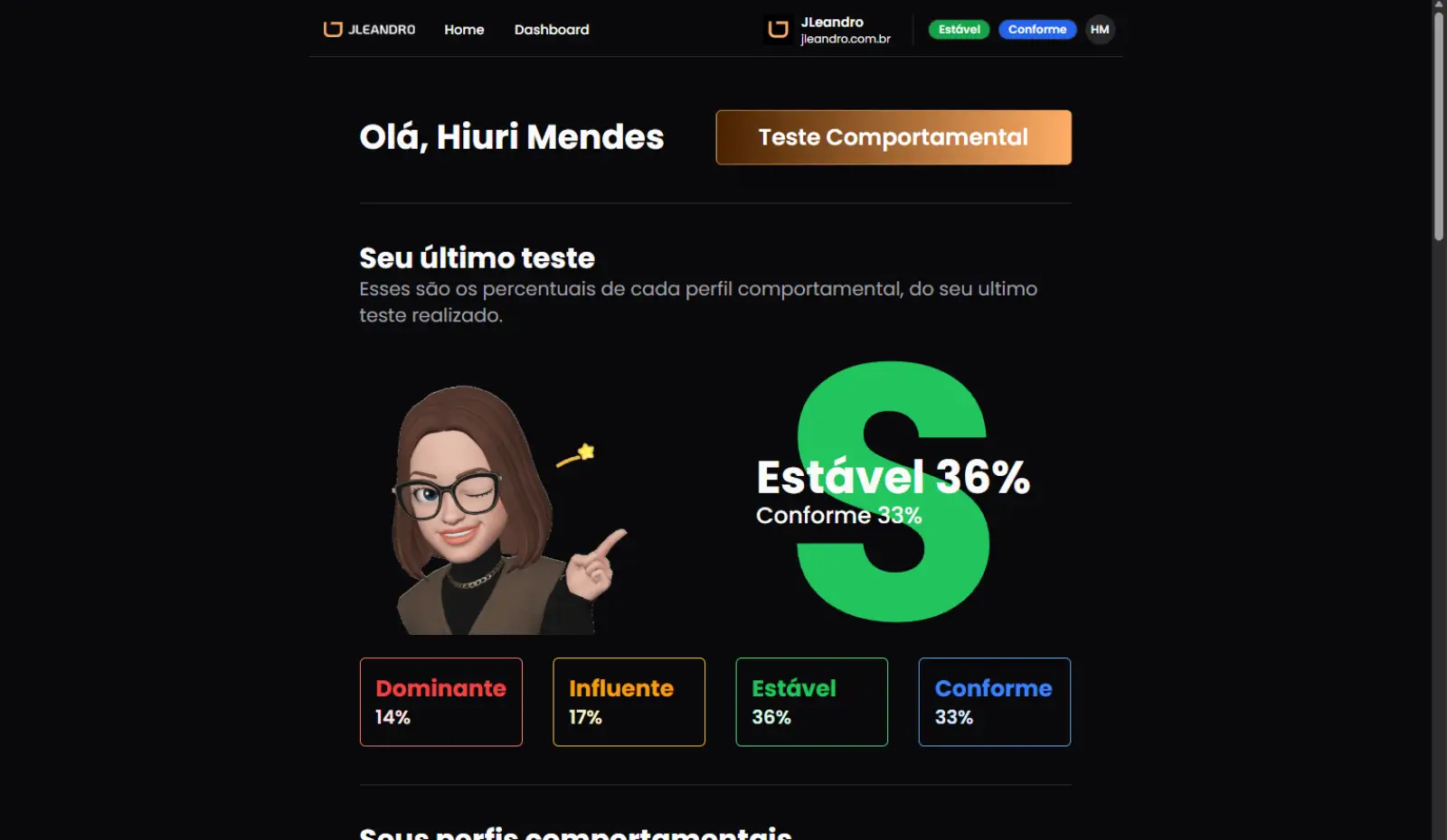App web para realização do teste DISC, uma ferramenta de análise comportamental amplamente utilizada em processos de recrutamento e desenvolvimento pessoal.