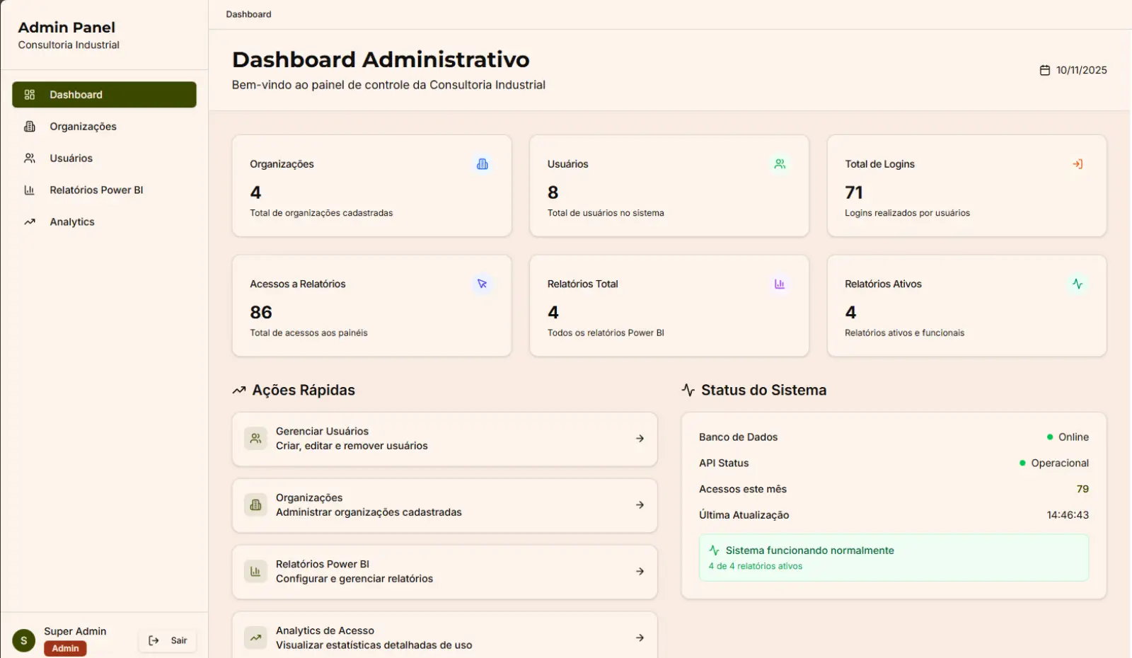 Plataforma de gestão de paineis (dashboards) para a consultoria Sayoko Nakajima, uma consultoria especializada na indústria alimentícia.